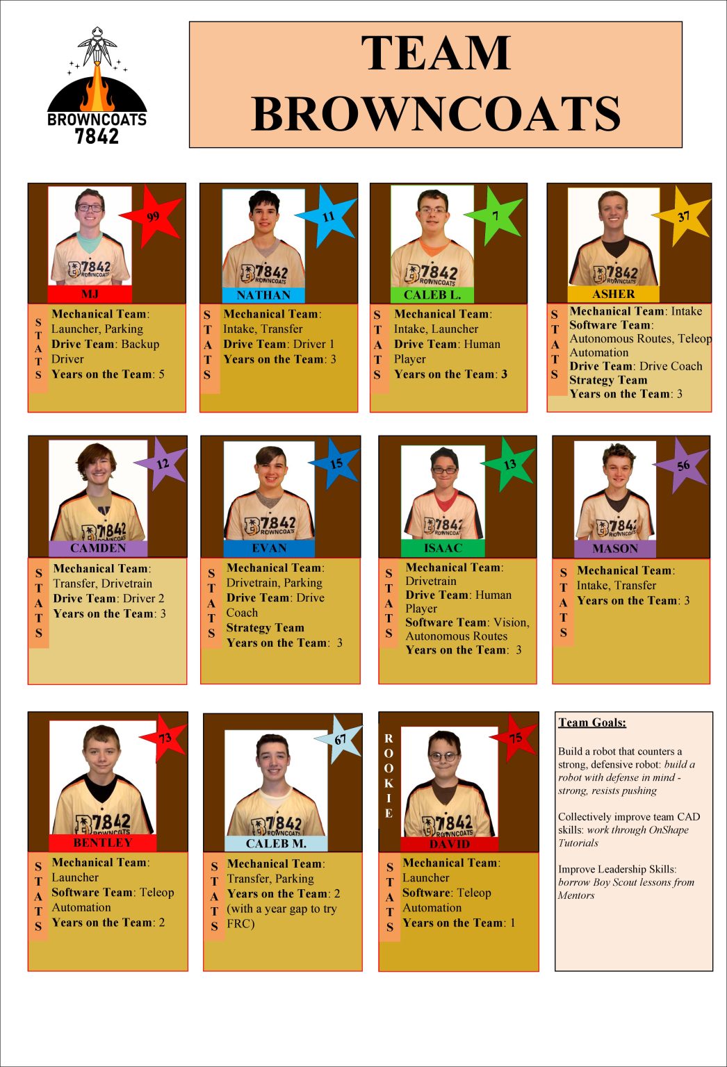 Our Team Meet our team! Our 2024-2025 Season team includes the following fourteen members: Joel, MJ, Ella, Mia, Nathan, Isaac, Caleb, Mason, Asher, Higen, Evan, Camden, Ava, and Bentley